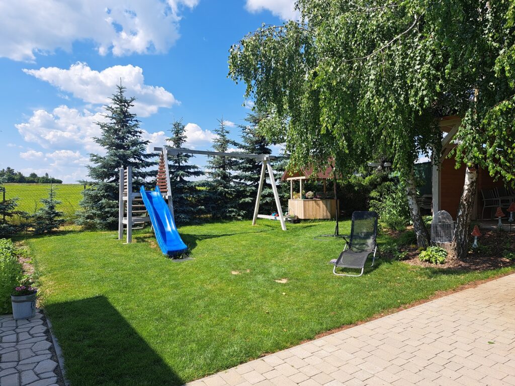 Nasze gospodarstwo Klimaty otacza cisza, ogród z pięknie pachnącą lawendą, różami i innymi kwiatami oraz świerki i lasek sosnowy. Do dyspozycji Gości jest przestronna altana, miejsce na ognisko, grill, leżaki oraz huśtawka ze zjeżdżalnią. Oferujemy bezpłatny parking na ogrodzonym terenie.