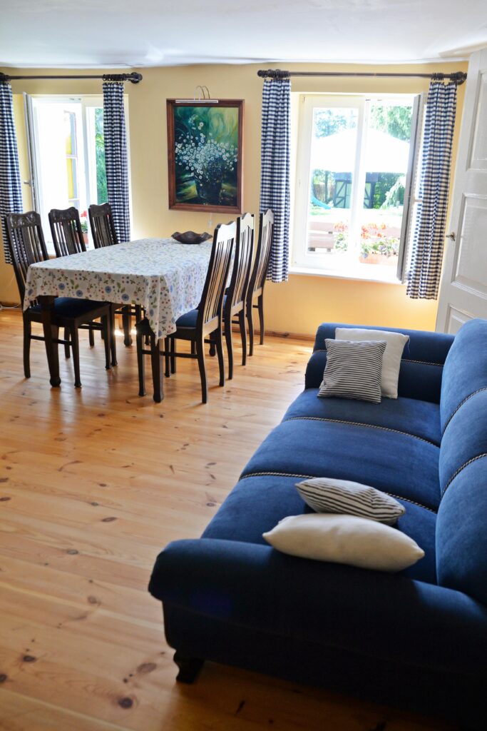 Retrodom pozwala poczuć magię minionych epok. W kuchni czeka tradycyjny piec na fajerki, w sypialniach ogrzewanie zapewnia stylowa koza oraz kaflówka. W salonie zaś gości rozgrzewa kominek. Wszystko to tworzy niepowtarzalny klimat, pozwalający oderwać się od zgiełku codzienności. Rozkoszuj się ciszą i bliskością przyrody – jedynymi sąsiadami są tu ptaki zamieszkujące obszar chroniony Słowińskiego Parku Narodowego.