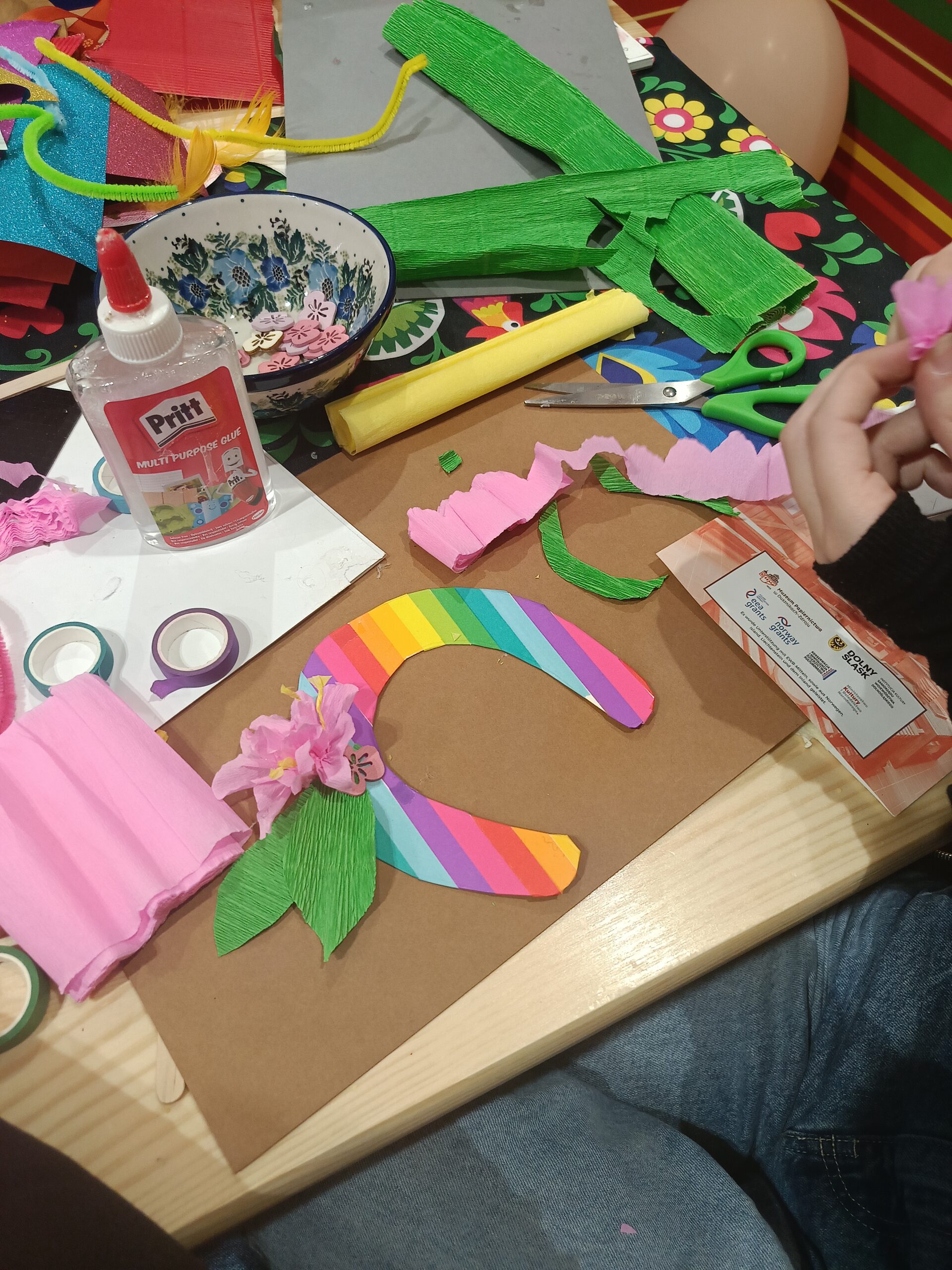 Podczas warsztatów poświęcimy się symbolice i estetyce jednego z najbardziej znanych talizmanów ludowych – podkowie na szczęście. Pokaz obejmuje prezentację różnych technik plastycznych i manualnych, umożliwiających wykonanie dekoracyjnej podkowy z wykorzystaniem kartonu, papieru kolorowego, bibuły, plasteliny, guzików i innych materiałów ozdobnych. Przygotowane wcześniej szablony podków stanowią bazę do twórczej pracy o charakterze artystyczno-rękodzielniczym.