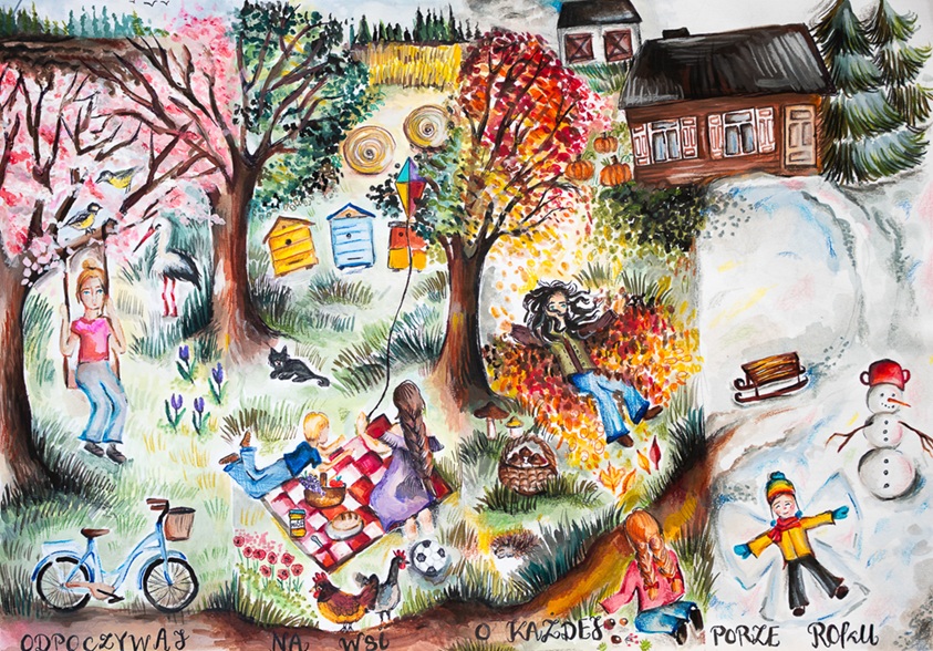 14 listopada 2025 r. Kapituła konkursu plastycznego pod nazwą „Odpoczywaj na wsi”, organizowanego przez Ministerstwo Rolnictwa i Rozwoju Wsi we współpracy ze szkołami podstawowymi oraz Wojewódzkimi Ośrodkami Doradztwa Rolniczego, dokonała oceny prac wykonanych przez dzieci i młodzież ze szkół podstawowych, które zostały zakwalifikowane do etapu ogólnopolskiego i wyłoniła następujących laureatów:
